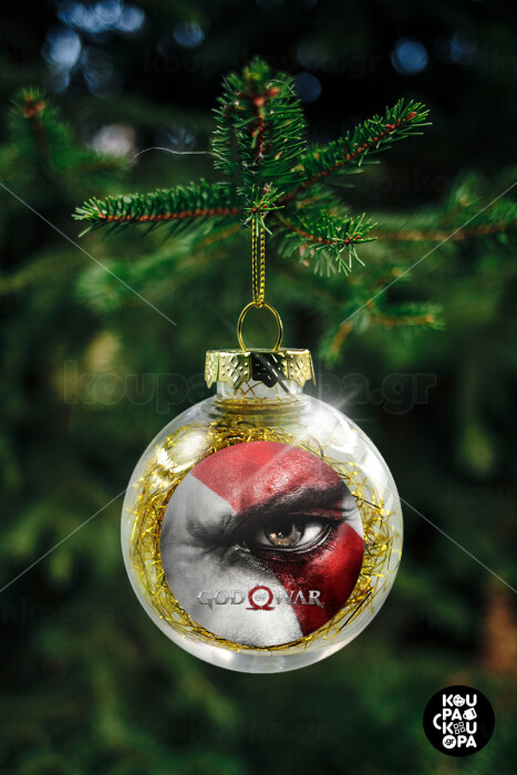 God of war Stratos, Στολίδι Χριστουγεννιάτικη μπάλα δένδρου διάφανη με χρυσό γέμισμα 8cm