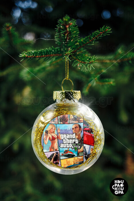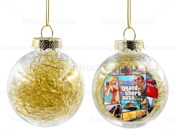 GTA V, Στολίδι Χριστουγεννιάτικη μπάλα δένδρου διάφανη με χρυσό γέμισμα 8cm