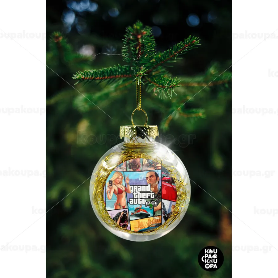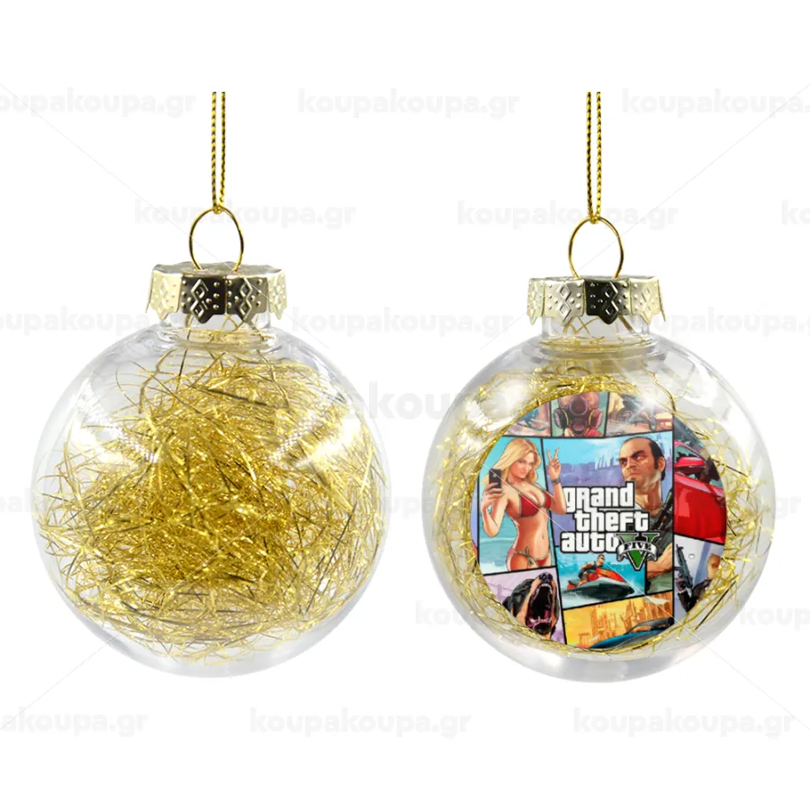 GTA V, Στολίδι Χριστουγεννιάτικη μπάλα δένδρου διάφανη με χρυσό γέμισμα 8cm