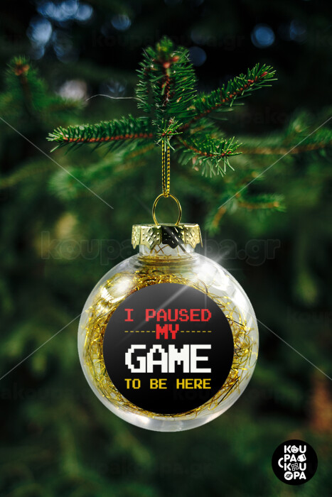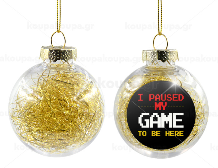 I paused my game to be here, Στολίδι Χριστουγεννιάτικη μπάλα δένδρου διάφανη με χρυσό γέμισμα 8cm