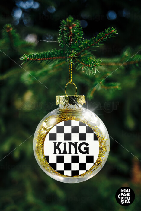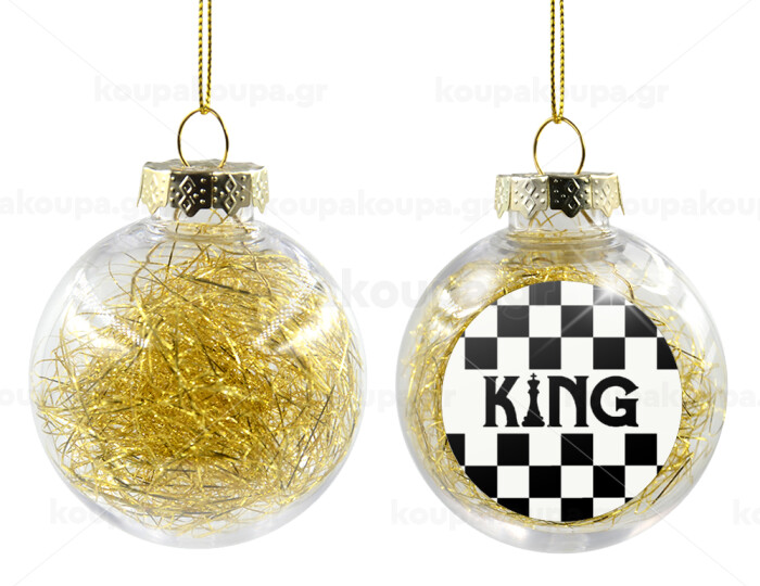 King chess, Στολίδι Χριστουγεννιάτικη μπάλα δένδρου διάφανη με χρυσό γέμισμα 8cm