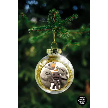 Little big planet, Στολίδι Χριστουγεννιάτικη μπάλα δένδρου διάφανη με χρυσό γέμισμα 8cm