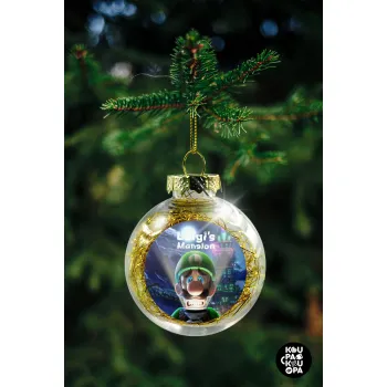 Luigi's Mansion, Στολίδι Χριστουγεννιάτικη μπάλα δένδρου διάφανη με χρυσό γέμισμα 8cm