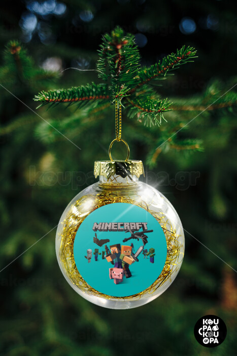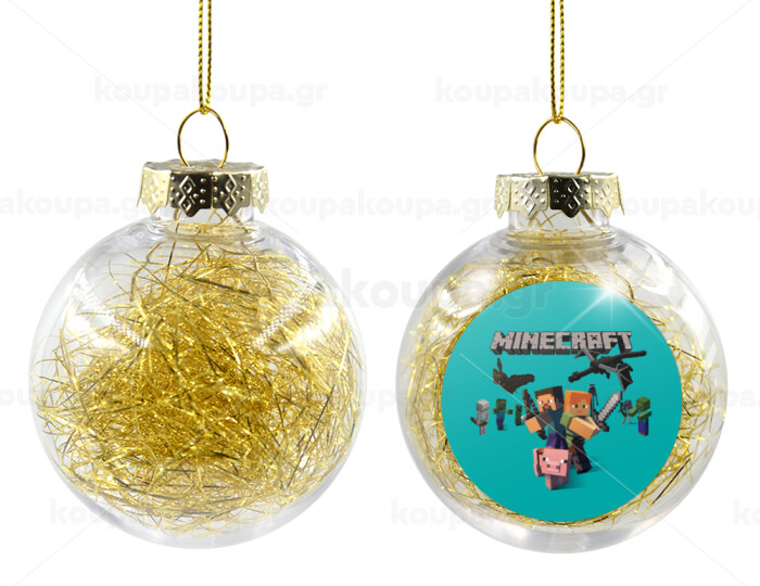 Minecraft Alex, Στολίδι Χριστουγεννιάτικη μπάλα δένδρου διάφανη με χρυσό γέμισμα 8cm