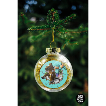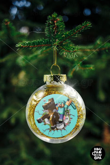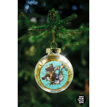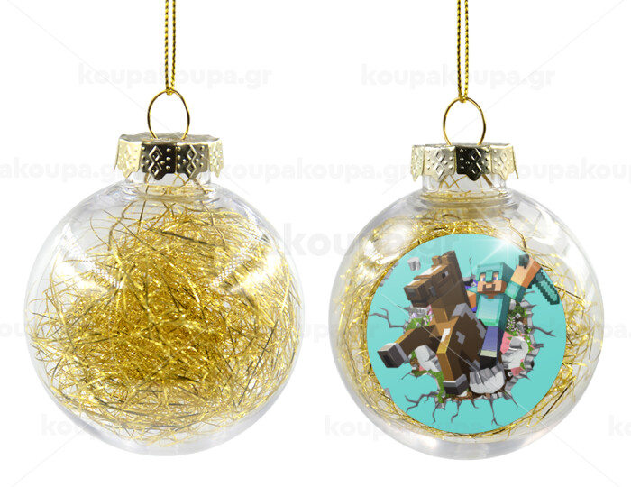 Minecraft brick, Στολίδι Χριστουγεννιάτικη μπάλα δένδρου διάφανη με χρυσό γέμισμα 8cm