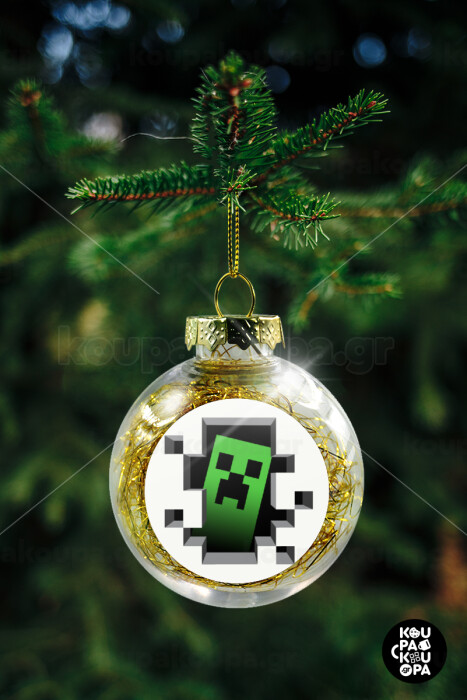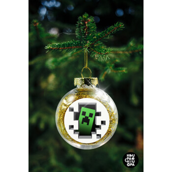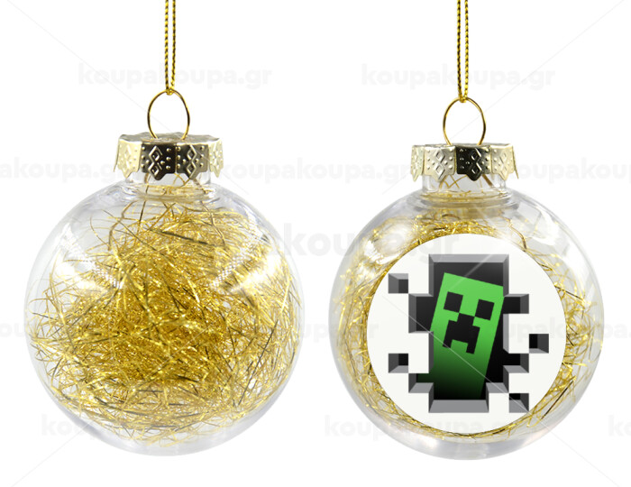 Minecraft creeper, Στολίδι Χριστουγεννιάτικη μπάλα δένδρου διάφανη με χρυσό γέμισμα 8cm