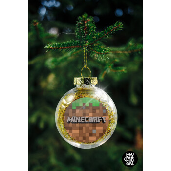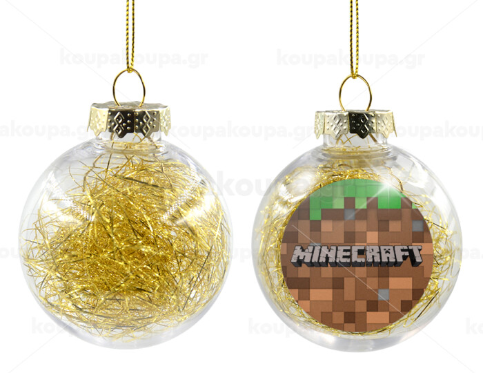 Minecraft dirt, Στολίδι Χριστουγεννιάτικη μπάλα δένδρου διάφανη με χρυσό γέμισμα 8cm