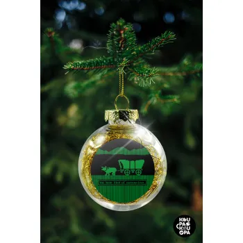 Oregon Trail, cov... edition, Στολίδι Χριστουγεννιάτικη μπάλα δένδρου διάφανη με χρυσό γέμισμα 8cm