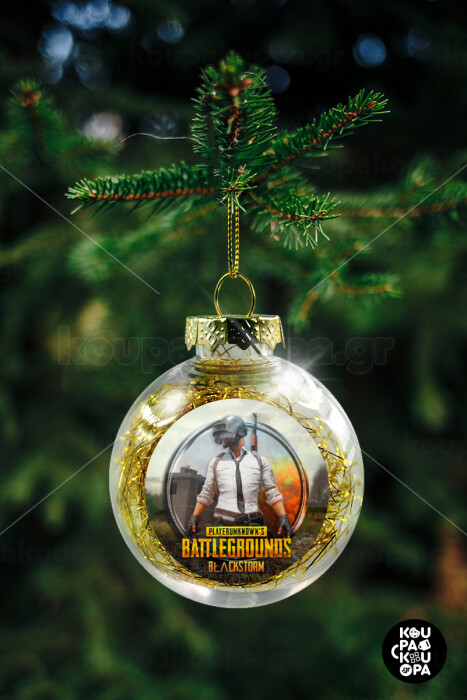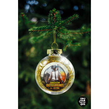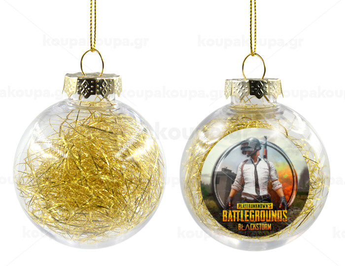 PUBG battleground royale, Στολίδι Χριστουγεννιάτικη μπάλα δένδρου διάφανη με χρυσό γέμισμα 8cm
