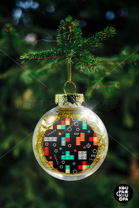 Tetris, Στολίδι Χριστουγεννιάτικη μπάλα δένδρου διάφανη με χρυσό γέμισμα 8cm