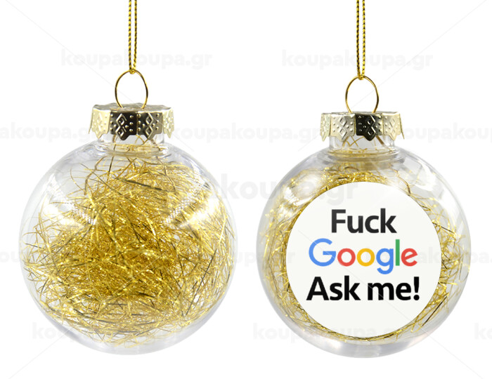 Fuck Google, Ask me!, Στολίδι Χριστουγεννιάτικη μπάλα δένδρου διάφανη με χρυσό γέμισμα 8cm