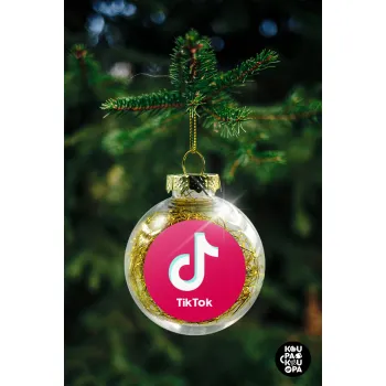 tik tok pink, Στολίδι Χριστουγεννιάτικη μπάλα δένδρου διάφανη με χρυσό γέμισμα 8cm