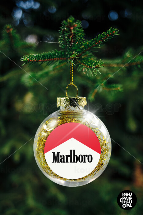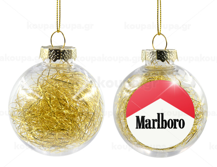 Marlboro, Στολίδι Χριστουγεννιάτικη μπάλα δένδρου διάφανη με χρυσό γέμισμα 8cm