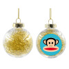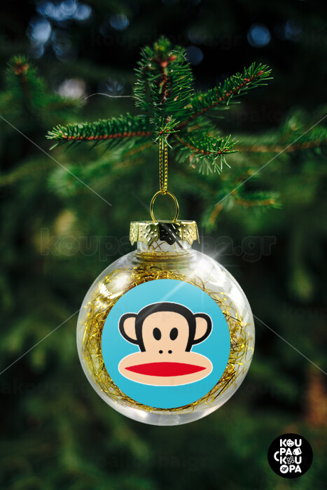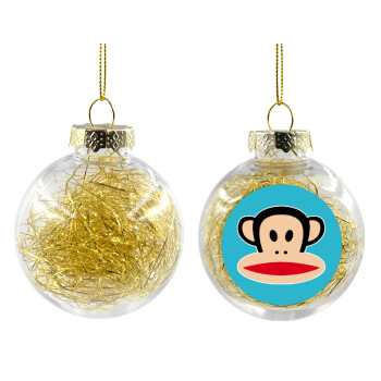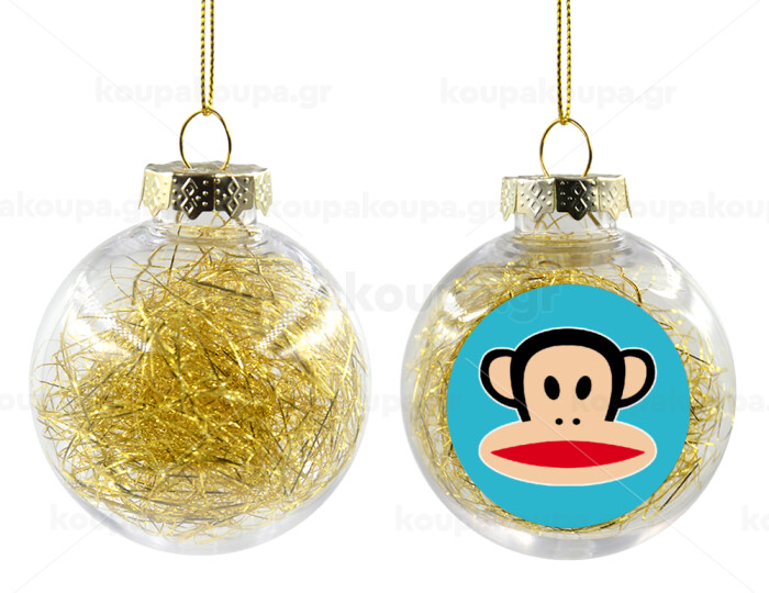 Monkey, Στολίδι Χριστουγεννιάτικη μπάλα δένδρου διάφανη με χρυσό γέμισμα 8cm