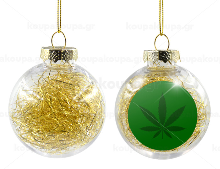 Weed, Στολίδι Χριστουγεννιάτικη μπάλα δένδρου διάφανη με χρυσό γέμισμα 8cm