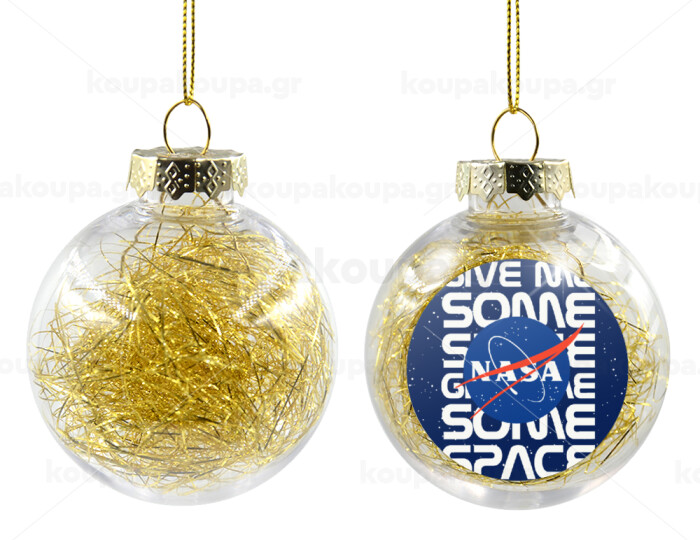 NASA give me some space, Στολίδι Χριστουγεννιάτικη μπάλα δένδρου διάφανη με χρυσό γέμισμα 8cm