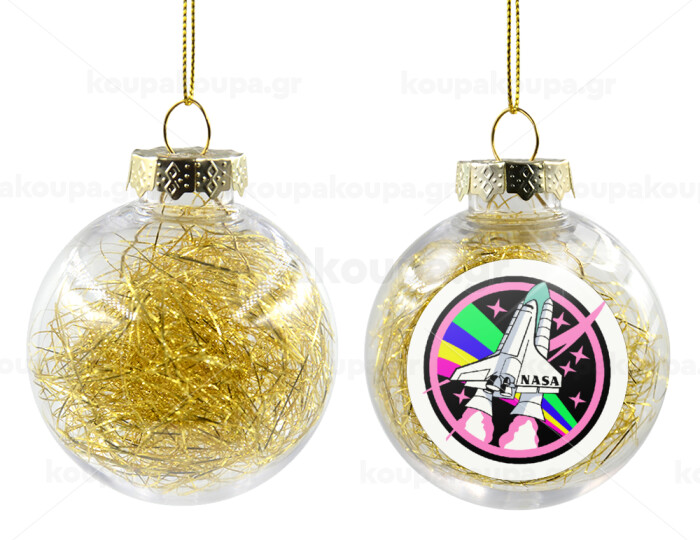 NASA pink, Στολίδι Χριστουγεννιάτικη μπάλα δένδρου διάφανη με χρυσό γέμισμα 8cm
