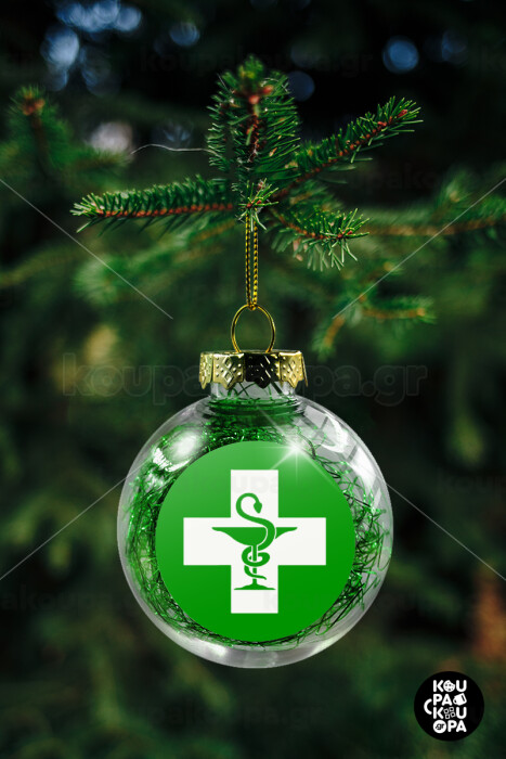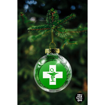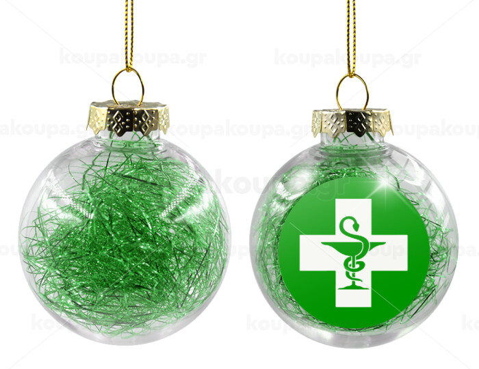 Φαρμακείο, Στολίδι Χριστουγεννιάτικη μπάλα δένδρου διάφανη με πράσινο γέμισμα 8cm