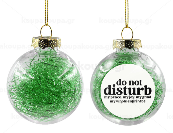 Do not disturb, Στολίδι Χριστουγεννιάτικη μπάλα δένδρου διάφανη με πράσινο γέμισμα 8cm