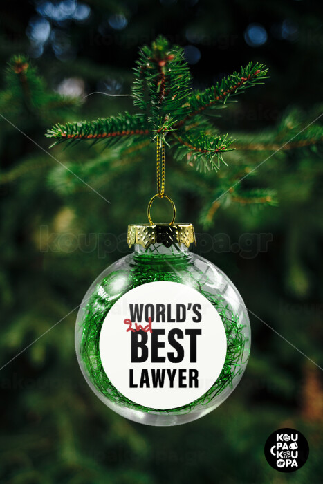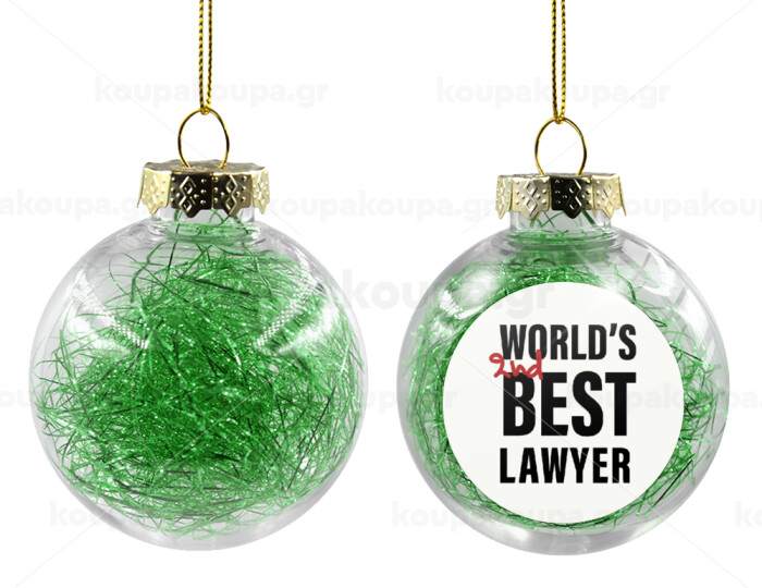 2nd, World Best Lawyer , Στολίδι Χριστουγεννιάτικη μπάλα δένδρου διάφανη με πράσινο γέμισμα 8cm