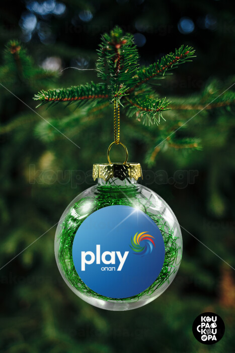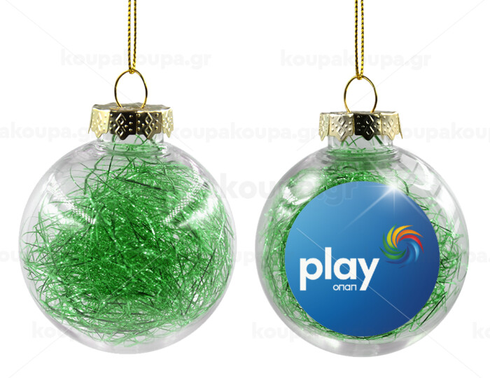 Play by ΟΠΑΠ, Στολίδι Χριστουγεννιάτικη μπάλα δένδρου διάφανη με πράσινο γέμισμα 8cm