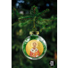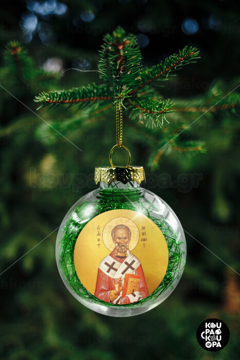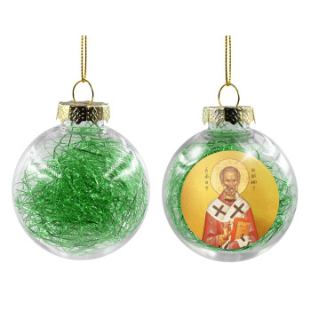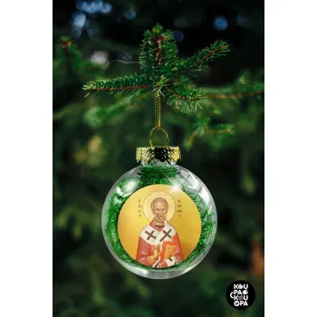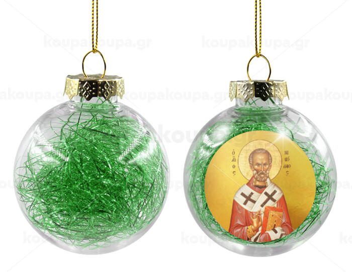 Άγιος Νικόλαος, Στολίδι Χριστουγεννιάτικη μπάλα δένδρου διάφανη με πράσινο γέμισμα 8cm