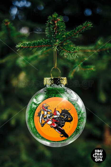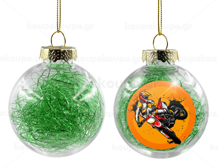 Motocross, Στολίδι Χριστουγεννιάτικη μπάλα δένδρου διάφανη με πράσινο γέμισμα 8cm