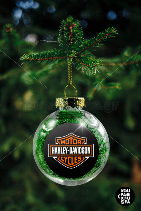 Motor Harley Davidson, Στολίδι Χριστουγεννιάτικη μπάλα δένδρου διάφανη με πράσινο γέμισμα 8cm