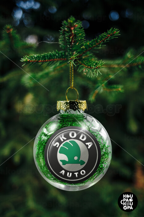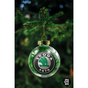 SKODA, Στολίδι Χριστουγεννιάτικη μπάλα δένδρου διάφανη με πράσινο γέμισμα 8cm