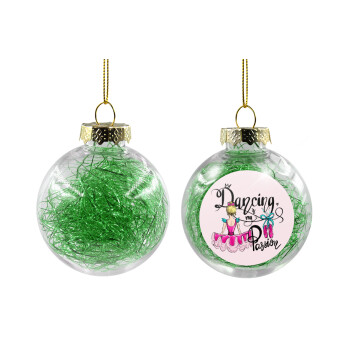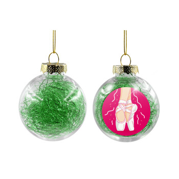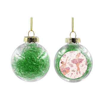 Ballerina in Paris, Στολίδι Χριστουγεννιάτικη μπάλα δένδρου διάφανη με πράσινο γέμισμα 8cm