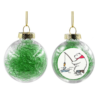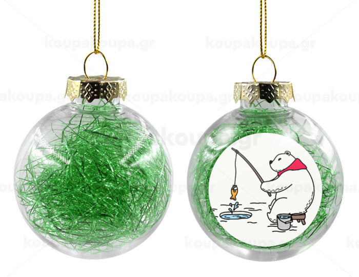 Αρκούδα ψαρεύει, Στολίδι Χριστουγεννιάτικη μπάλα δένδρου διάφανη με πράσινο γέμισμα 8cm