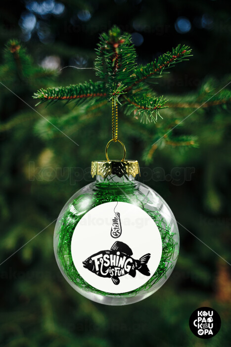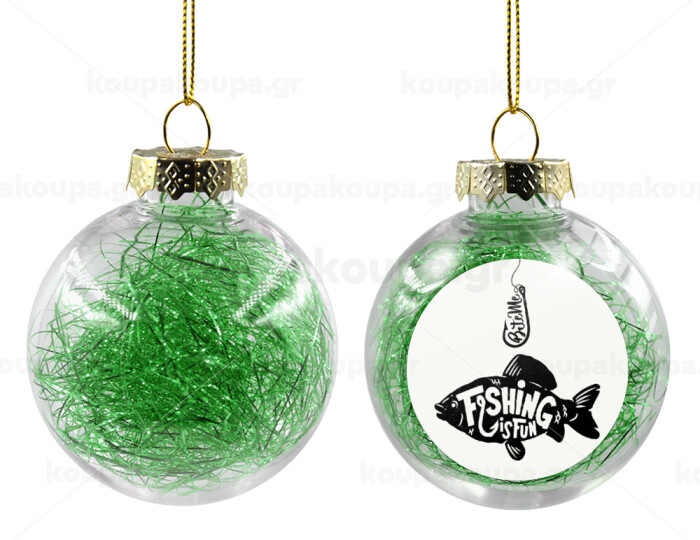 Fishing is fun, Στολίδι Χριστουγεννιάτικη μπάλα δένδρου διάφανη με πράσινο γέμισμα 8cm