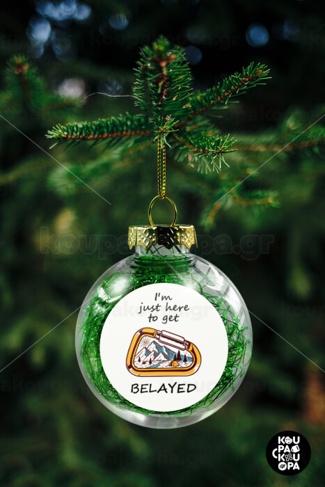 I'm just here to get Belayed, Στολίδι Χριστουγεννιάτικη μπάλα δένδρου διάφανη με πράσινο γέμισμα 8cm