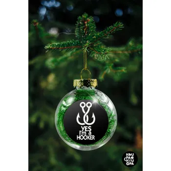 Yes i am Hooker, Στολίδι Χριστουγεννιάτικη μπάλα δένδρου διάφανη με πράσινο γέμισμα 8cm