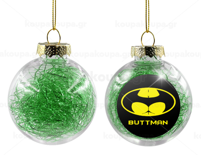 Buttman, Στολίδι Χριστουγεννιάτικη μπάλα δένδρου διάφανη με πράσινο γέμισμα 8cm