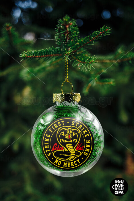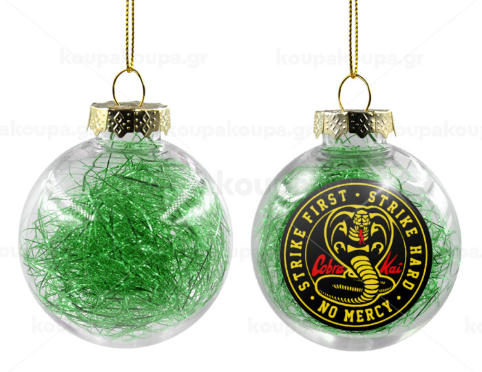 cobra kai strike first dojo, Στολίδι Χριστουγεννιάτικη μπάλα δένδρου διάφανη με πράσινο γέμισμα 8cm