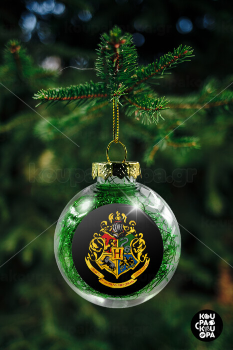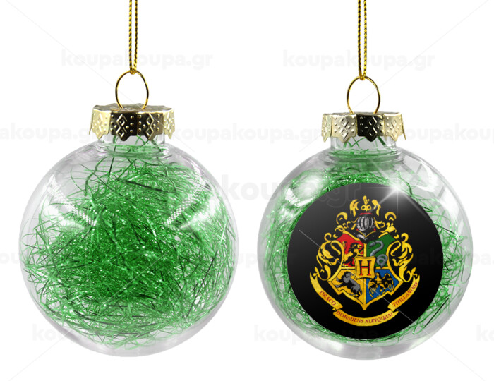 Hogwart's, Στολίδι Χριστουγεννιάτικη μπάλα δένδρου διάφανη με πράσινο γέμισμα 8cm