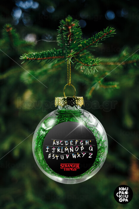 Stranger Things ABC, Στολίδι Χριστουγεννιάτικη μπάλα δένδρου διάφανη με πράσινο γέμισμα 8cm