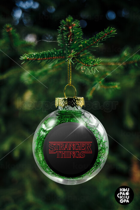 Stranger Things Logo, Στολίδι Χριστουγεννιάτικη μπάλα δένδρου διάφανη με πράσινο γέμισμα 8cm