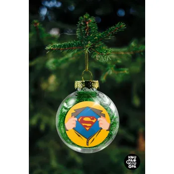 Superman hands, Στολίδι Χριστουγεννιάτικη μπάλα δένδρου διάφανη με πράσινο γέμισμα 8cm