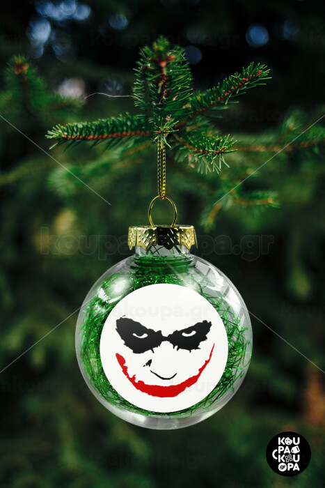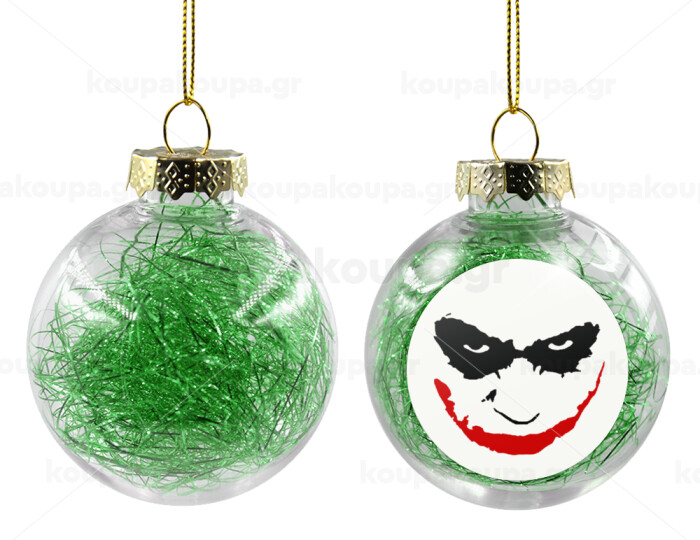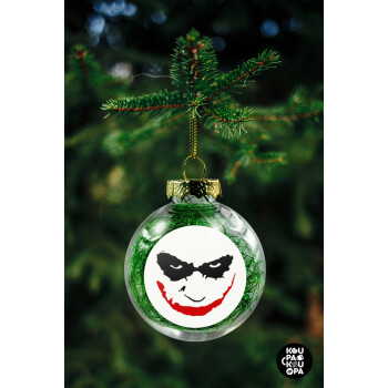 The joker smile, Στολίδι Χριστουγεννιάτικη μπάλα δένδρου διάφανη με πράσινο γέμισμα 8cm
