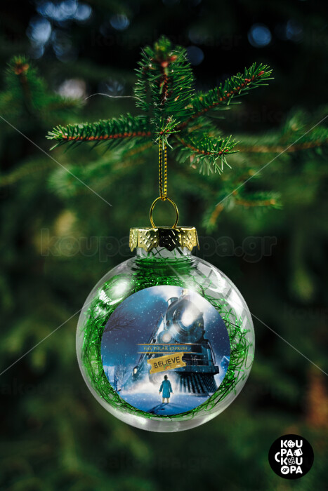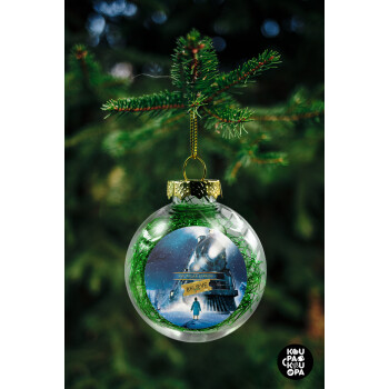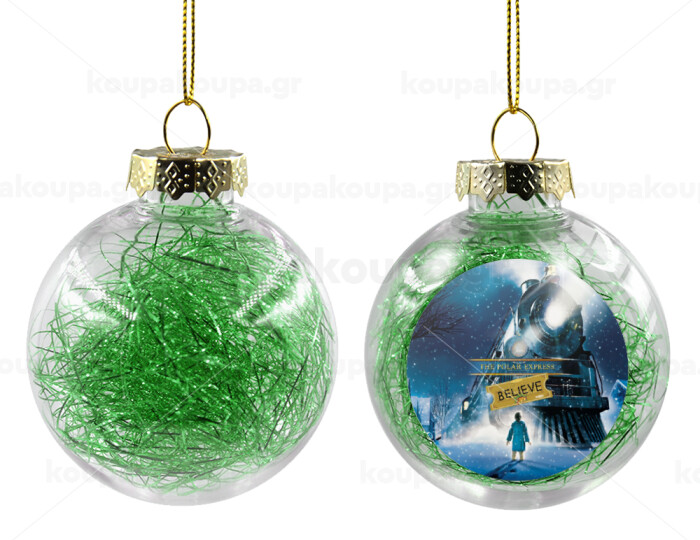 Το πολικό εξπρές, Στολίδι Χριστουγεννιάτικη μπάλα δένδρου διάφανη με πράσινο γέμισμα 8cm