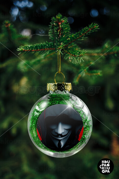 V for Vendetta, Στολίδι Χριστουγεννιάτικη μπάλα δένδρου διάφανη με πράσινο γέμισμα 8cm
