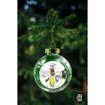 Λούκυ Λουκ comic, Στολίδι Χριστουγεννιάτικη μπάλα δένδρου διάφανη με πράσινο γέμισμα 8cm