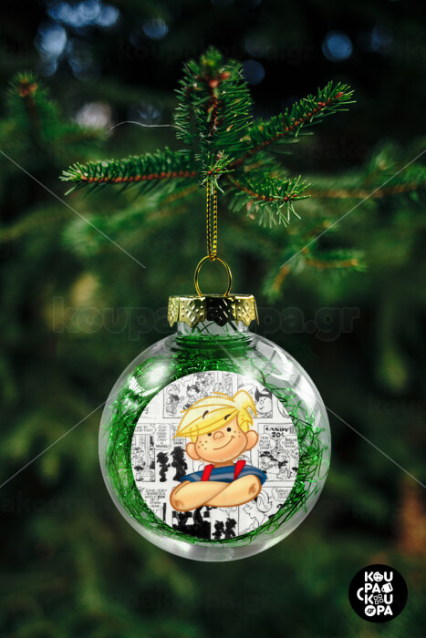 Ντένις ο τρομερός, Στολίδι Χριστουγεννιάτικη μπάλα δένδρου διάφανη με πράσινο γέμισμα 8cm