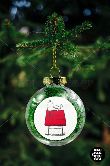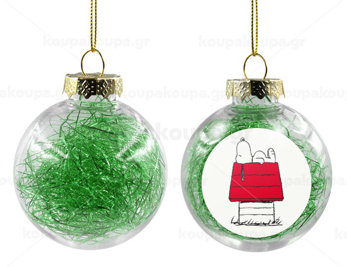 Το σπίτι του snoopy, Στολίδι Χριστουγεννιάτικη μπάλα δένδρου διάφανη με πράσινο γέμισμα 8cm