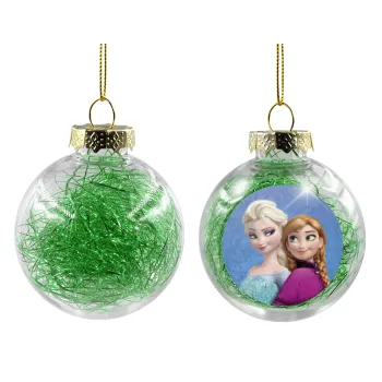 Ψυχρά κι ανάποδα Έλσα και Άννα, Στολίδι Χριστουγεννιάτικη μπάλα δένδρου διάφανη με πράσινο γέμισμα 8cm