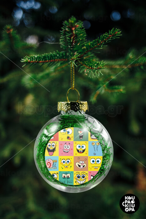 Ο μπομπ και οι φίλοι του, Στολίδι Χριστουγεννιάτικη μπάλα δένδρου διάφανη με πράσινο γέμισμα 8cm