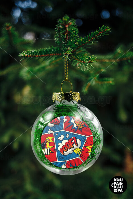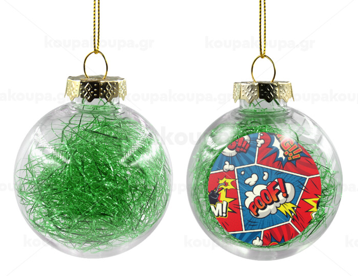 Comic boom!, Στολίδι Χριστουγεννιάτικη μπάλα δένδρου διάφανη με πράσινο γέμισμα 8cm