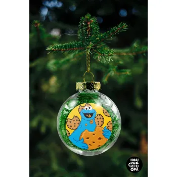Cookie Monster, Στολίδι Χριστουγεννιάτικη μπάλα δένδρου διάφανη με πράσινο γέμισμα 8cm